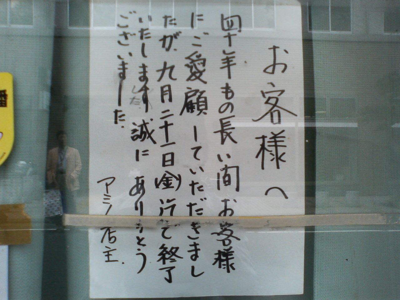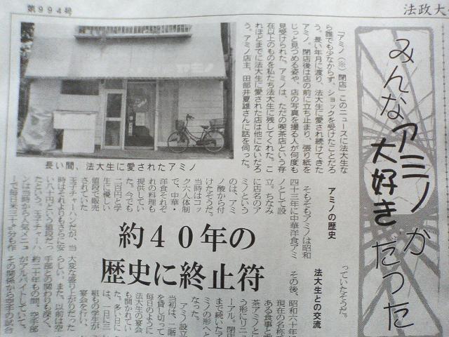 2007年12月10日発行の法政大学新聞第994号にアミノ閉店記事「みんなアミノが大好きだった」が掲載されています。